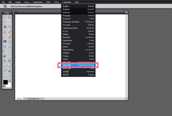 選擇後進入檔案下的操作介面,可以發現操作介面功能很完整,同時上方工具列有「Language」選項,選擇「傳統中國」,就會出現繁體中文操作介面。