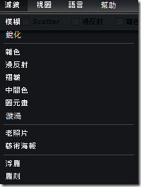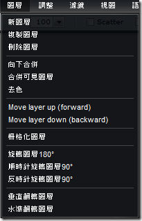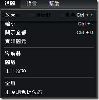 在上方的工具列部份,則包括文件、編輯、圖像、圖層、調整、濾鏡、視圖、語言、幫助等選項,與photoshop差不多。