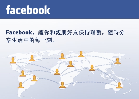 無論是上google搜尋「Facebook」,或是鍵入「http://www.facebook.com」,總之到Facebook網頁,會看到以下畫面。
