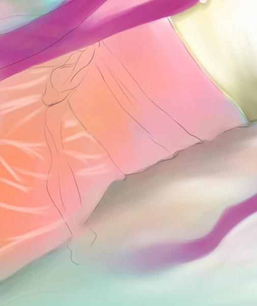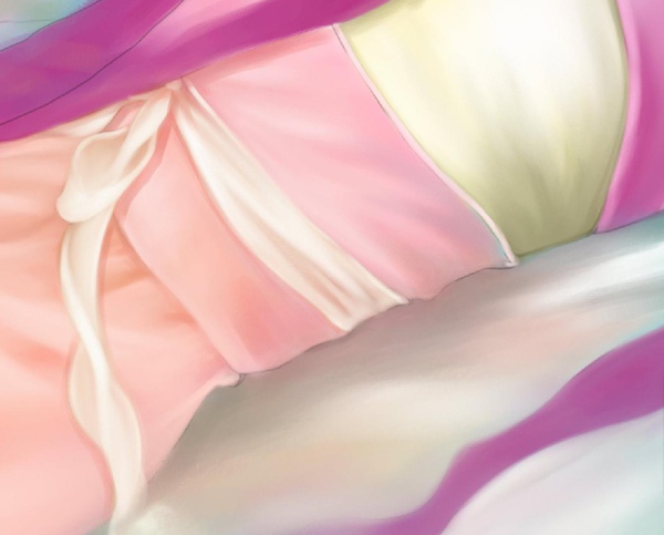 因為此筆的線條較清楚銳利,用淺色畫出腰帶亮處,用“混色筆-只加水”塗抹均勻,並用數位水彩畫出腰帶下的陰影,接著變乾數位水彩,然後再用“噴槍-輕柔噴槍30”來修飾即可。