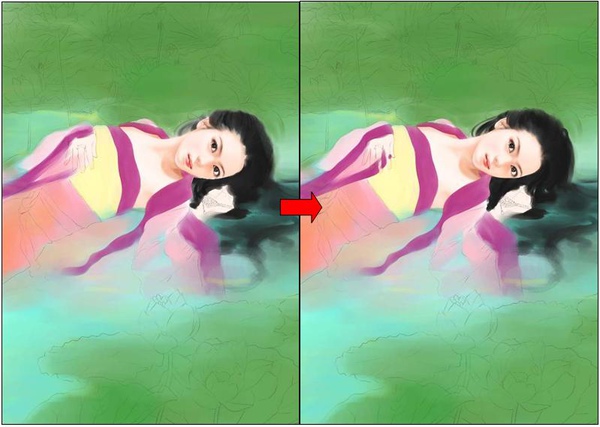 >塗勻顏色>畫出人物與水交接處地方的深色