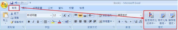 這時候可以使用Excel「常用」功能列中的「樣式」功能。