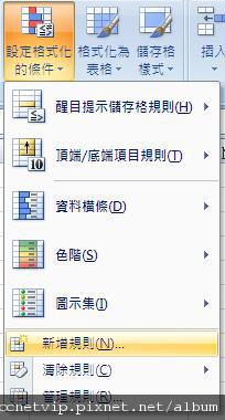 選取要建立規則的範圍後(在本例是所有的考試成績),選擇「設定格式化的條件」下拉選單中的「新增規則」。