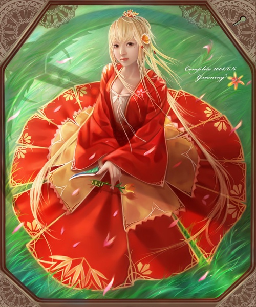 『童話死神』這幅畫是依照自己心中想像的故事腳本所描繪出來的,整幅畫就是一本古書的封面,書裡住著一位美麗而哀愁的女子,手裡雖然握著一把花鑰,無奈但卻看不見也找不著讓自己得以解脫的鎖孔,注定一輩子受困書中。