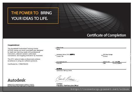 當初報名的時候,聯成電腦課程買一送一相當優惠,這時我很苦惱要選哪一個課程,當初的輔導老師推薦我學3DsMAX。學完ainter後,課業開始忙了,一直沒有機會學3DsMAX,但近年來生活一直被「3D」圍繞著,不管什麼都要3D,最普遍的是電影,阿凡達票房長紅,接著連電視、電玩,甚至連跨年晚會的舞台也有3D效果,我覺得如果我學會3DsMAX或許可以跟得上時代的潮流。