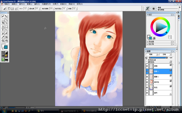 暗部好了後,換亮部,新開圖層-重疊。用亮黃色把眼皮上的亮光、眼頭、還有其它部位的亮部,再加強一些,至此,整張圖已經快算是完成囉!