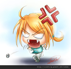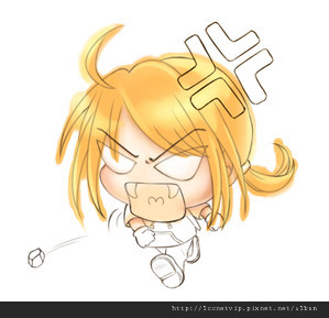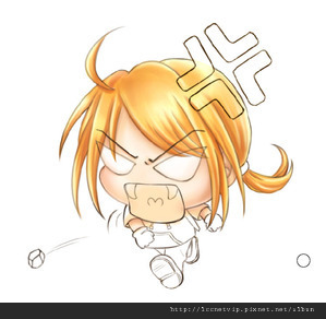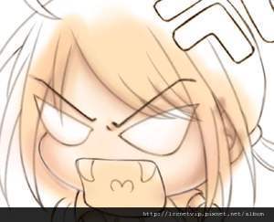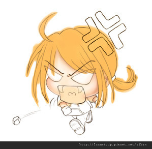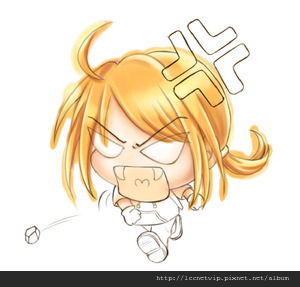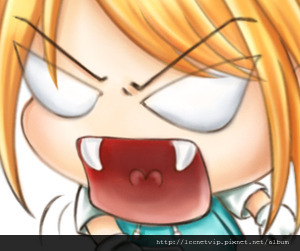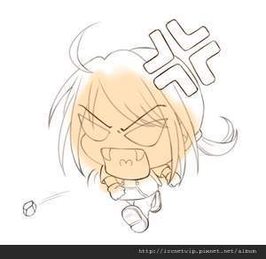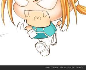12. 到這裡人物就算是完成了! 只需要把其他的小配件像石頭和頭上的生氣符號給補上,並加上影子和簡單的背景即可,最後不要忘了簽名, 簽名代表這張圖已完成, 所以一定要簽喔!