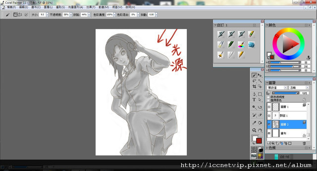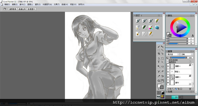 然後開始上色,把每個部份都塗上顏色 這裡我分了很多圖層方便後來修改。