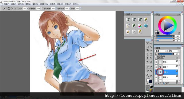 這時候如果上色就可以直接塗在虛線內而不圖到其他部分,分圖層的好處就可以在這裡看出來