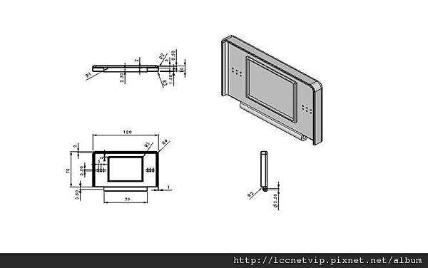 上蓋部分的描繪,最重要的是在「軸」的連結上,距離要預先規劃設計好,讓兩邊對稱地方稍微留點小縫隙,方便我們在組合零件後轉動時比較有真實感,另外在液晶面板部分,可以先挖出空間後再補放一塊上去,這樣比較能有立體的落差桿,看起來會比較真實。