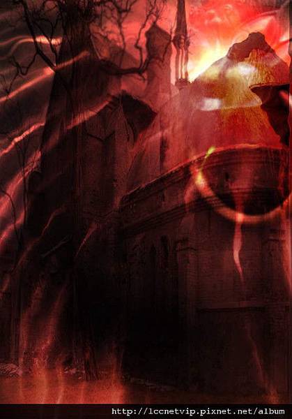 最後在背景上使用刷式化刀以隨性的方式刷出數片紛飛的符咒紙,記得紙張扭曲處同樣要作光影處裡喔,在最上層新增一圖層並設定為「重疊」,在此圖層上以噴槍添加其他冷色系環境光,這樣整體感才不會顯得單調。