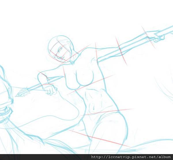 位置確定後,就可以將木頭人,加上肌肉線條,畫成素體的樣子。