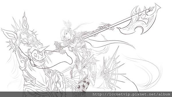 小技巧分享 線稿分開畫的玩法:可以將馬、人物、武器三個分開圖層繪畫,因為不見得第一次下筆的位置就是自己最滿意的位置,所以可以運用電腦繪圖的特性,來任意調整位置或是透視變形等方式來調整到自己最滿意的位置喔。 |