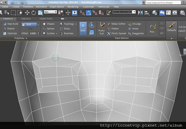 max 2010開始將Graphite Modeling Tools面板加入內建的工具列裡,其實這是個已經流傳一段時間也相當廣受好評的外掛,2009以前的版本也能安裝這個外掛。在2010版本當中,許多功 能其實比較像是將Edit poly的按鍵轉換個位置,不過在2011版開始,陸續增加了些按鈕,開拓了新的功能,Freeform裡的Paint Deform敏銳度也大幅提升,遠遠超越舊版本Edit poly的Paint Deform效果,大幅節省了將模型調整平順、提升美感所需要的時間。話不多說,咱們就直接進入正題開始操作吧。