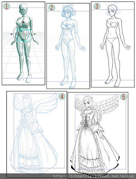 ◎首先運用comic studio的3D素材中的女性人偶,編輯設計一全身站立姿態的人物,注意手部動作呈現自然的感覺。