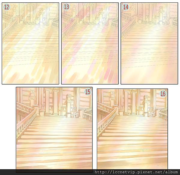 ◎在場景部分加上白色光影,呈現金碧輝煌的氣氛。