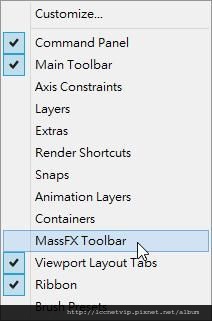 9.在工具列的空白處,按下滑鼠右鍵,開啟【MassFXToolbar】工具列。