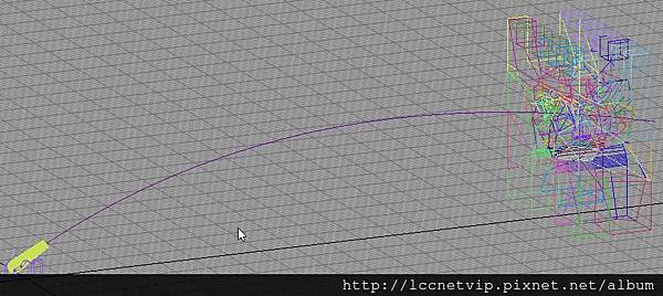 5. 在前視圖,用【Line】繪製砲彈的路徑,調整為拋物線。