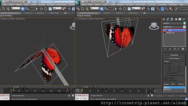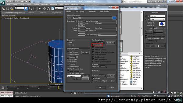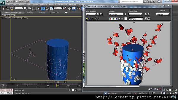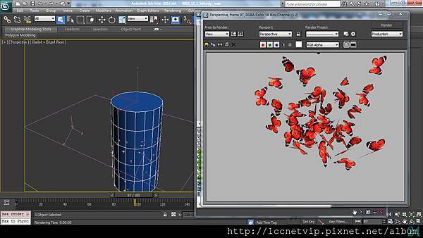 最後,在Shape 001按右鍵選擇Turn Off並回到場景中將圓柱的Renderable勾選取消,就能產生突然冒出蝴蝶的效果囉。