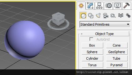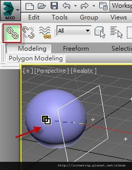 4.點擊畫面左上角Select andLink鏈結按鈕,把粒子系統鏈結到球體上,這樣球體移動時,粒子系統也會一起移動。
