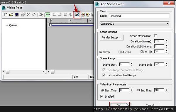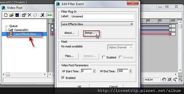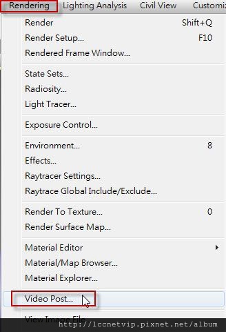 8.點擊Rendering來開啟Video Post,設定VP特效。