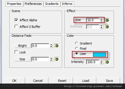 13.切換到Preferences頁籤,Size可變更大小,Color設定為User,可自行設定發光顏色。