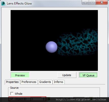 15.點擊Preview預覽畫面,點擊VP Queue執行程序,可預覽球體發光。(畫面要看得到球體,預覽才看得到)