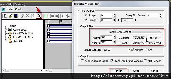 18.點擊Execute Sequence準備彩現,設定輸出影格與尺寸,按下Render輸出。