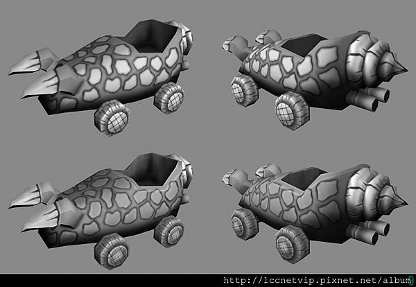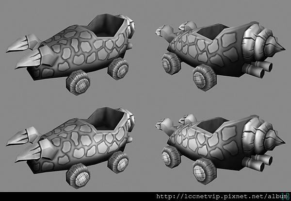 以相對來說,凸出的部分總是比較亮,內凹的部分總是比較暗。在剛開始畫時,下手不必太重,盡量保留圖層,以便調整各種光影的比例和強弱。在畫的同時,可以轉一轉模型,各個角度算圖來觀察是否合理、自然。