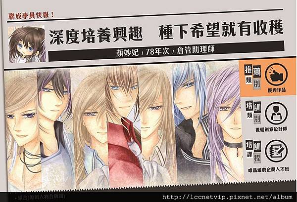 我最不擅長的一直是風景及背景部分,上課之後學到如何練習及繪畫方法,雖然起初總覺得畫起來很生硬,工具也不太熟悉,但漸漸已進入狀況。上課過程中,輔導老師們都很親切,老師上課也很風趣,也會分享一些業界的經驗….等,我相信只要我認真努力,一定可以得到很多收穫。