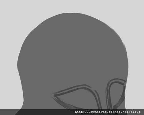 1.首先,一樣在畫布上開啟一個新的圖層,將要畫的範圍大致用”數位噴槍”以深灰色畫出。