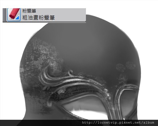 6.隨便拿支筆刷,將頭盔上的花紋依喜好畫出,切記有個重點,花紋是”立體”並非”平面”,所以要將花紋的亮暗如圖繪製出來。