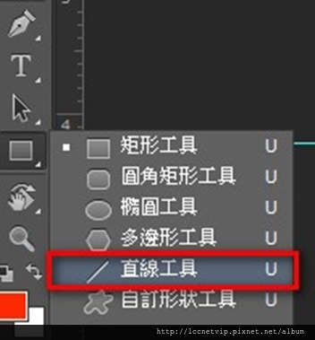 3.點擊左方工具列 > 選擇矩形工具>長按不放便會切換成直線工具。
