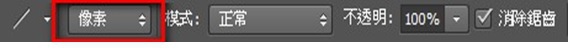 4.將上方工具列的「形狀」改為「像素」。