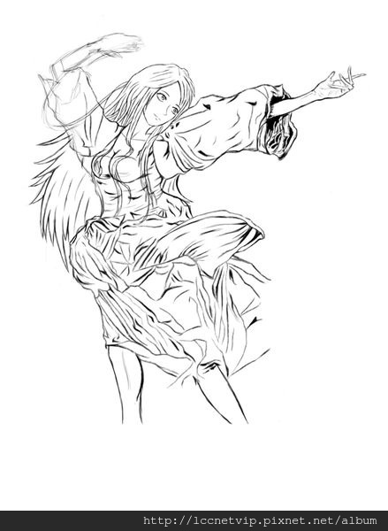 畫到後面,發現她的手好像在指揮交通,於是稍微改了一下角度。更像指揮交通....不行、不行。