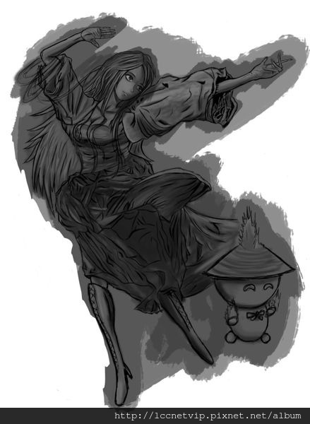 一開始本想要畫一位卡通風格的女角色(御姊的那種),女戰士那種設定,畫了好幾張,光是找衣服參考找了老半天,找不到自己想像中那種夢想衣,之後就決定了找有關中國服飾的女性大薄衣(跳舞的那種),會飄來飄去。順便局部分配一些光影、衣服皺褶的深淺。