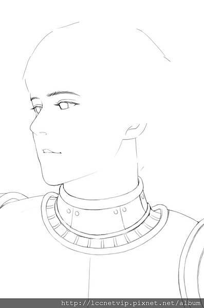 個人覺得挺像男生的,那我就是參考西方男生畫的,不過聖女貞德就是個俊美女漢子吧!好的,一開始,我先用小筆頭的數位噴槍畫線稿,如下圖,選擇一個80度角的半側面,90度就是側面了,所以80度已經快側面了,內側只露出一點點眼睛,身上當然則是畫上西方盔甲。