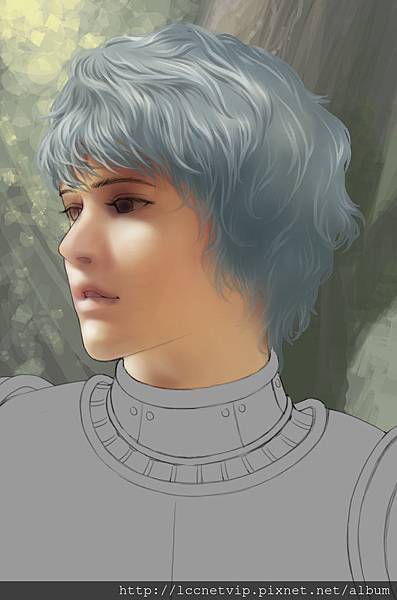 接著再畫上背景,畫上一片森林,充滿樹木,灑下閃閃陽光,溫暖戰後的聖女貞德,給她如天使般的關愛與信心,人真的會為神賣命啊!下一篇下回繼續完成,敬請期待,也謝謝大家觀賞。