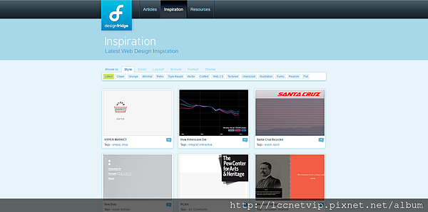 來自英國的網站設計作品網站,收錄超過7,000個質感的設計,分類相當細,依Style、Color、Layout、Texture、Format、Theme等來搜尋,能看到歐系風格的設計較少見,也是很不錯的靈感。