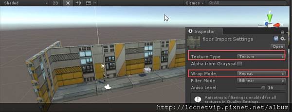 將喜歡的圖片拖曳到方塊,圖片的類型必須選擇Texture與Repeat。