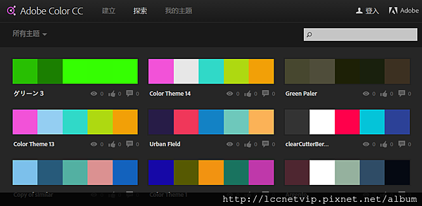 如有使用Photoshop CC的人應該對此平台不陌生,收錄了PS使用者的color主題,可立即在軟體上當色票使用。如果不滿意也可自行在編輯,或是儲存以便往後使用。