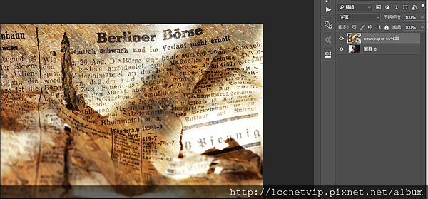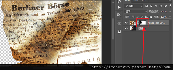接著在去背好的人物圖圖層以CTRL+滑鼠左鍵,將區域選取出來後,在報紙圖層建立遮色片。