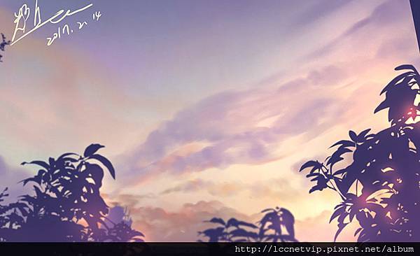 9.下方的雲彩也和上方的雲彩畫法一樣,在畫的時候要考量到用色,因為現在是夕陽西下的雲彩,雲的邊緣處會帶有一些透光的黃色效果,看起來才自然。
