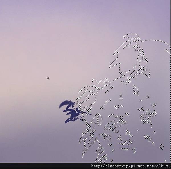 5.左邊的樹葉剪影也照前面幾張圖的方式,利用套索工具繪製出來。