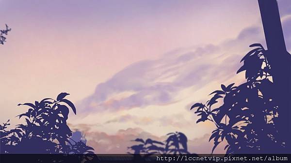 7.近景、中景、遠景都處理完畢後,就可以來畫天空了,而這邊我想畫出夕陽呈現的彩霞效果,所以用色上我使用黃色、紅色、紫色 稍微先把顏色暈染出來。
