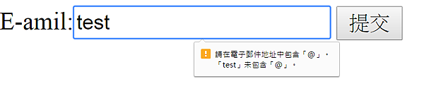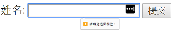 使用方式就是在input標籤中,加上「required」這個新屬性,如未填寫資料時,就會在送出時跳出提示框。