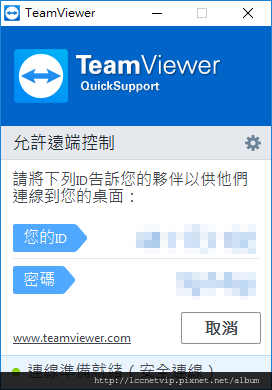 執行工具後,可以看到你的ID與密碼,將資訊提供給遙控端,就可以連線來操作你的電腦。