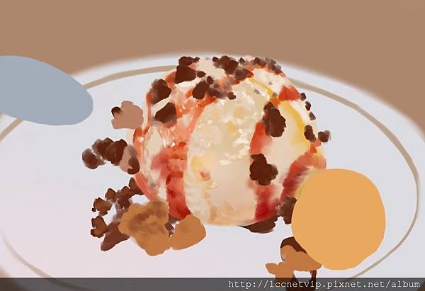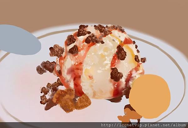 5.冰淇淋暗面的部份畫得差不多了,接著就要來用”點畫”的方式,將冰淇淋的亮面點亮出來,點亮後看起來才會有冰淇淋該有的水潤光澤。