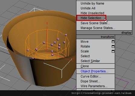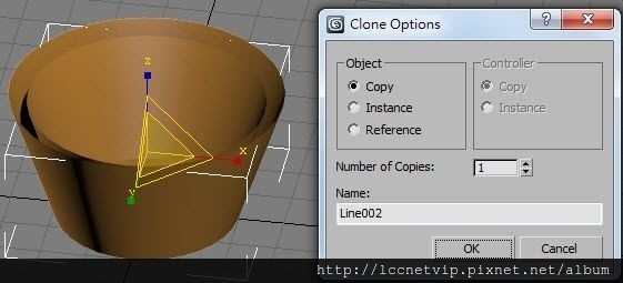 2. 加入【Lathe(車削)】修改器,將對齊旋轉軸設為【Max】,作出杯子。