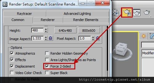 19. 開啟進階彩現設定,將【Force2-Sided】選項打勾,使彩現時可看見杯子的背面。